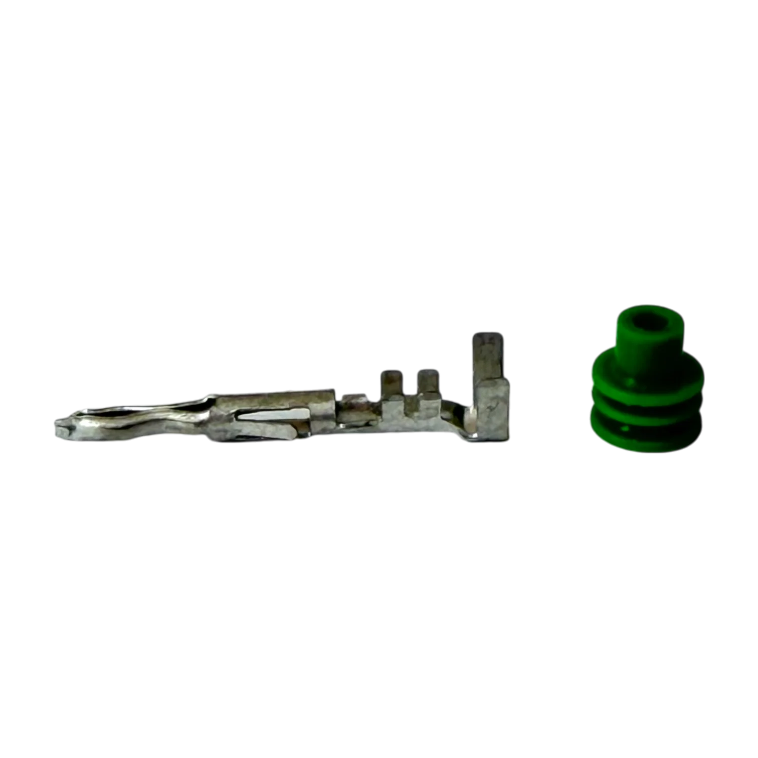 El conector Ref. 12010973 utiliza terminales macho de la serie Weather-Pack, diseñadas para ser crimpadas en cables de calibre 14-16 AWG o 18-20 AWG, dependiendo de la potencia de las luces. Estas terminales cuentan con alas de retención que se anclan firmemente en la carcasa. En cuanto a los sellos, utiliza sellos de silicona individuales (single wire seals) que se instalan sobre el aislamiento del cable antes del crimpado. Estos sellos vienen en colores codificados por diámetro: verde para cables delgados y gris para cables más gruesos. La combinación de estos elementos dentro del cuerpo del 12010973 crea una cámara estanca que impide que cualquier contaminante toque el punto de contacto eléctrico.