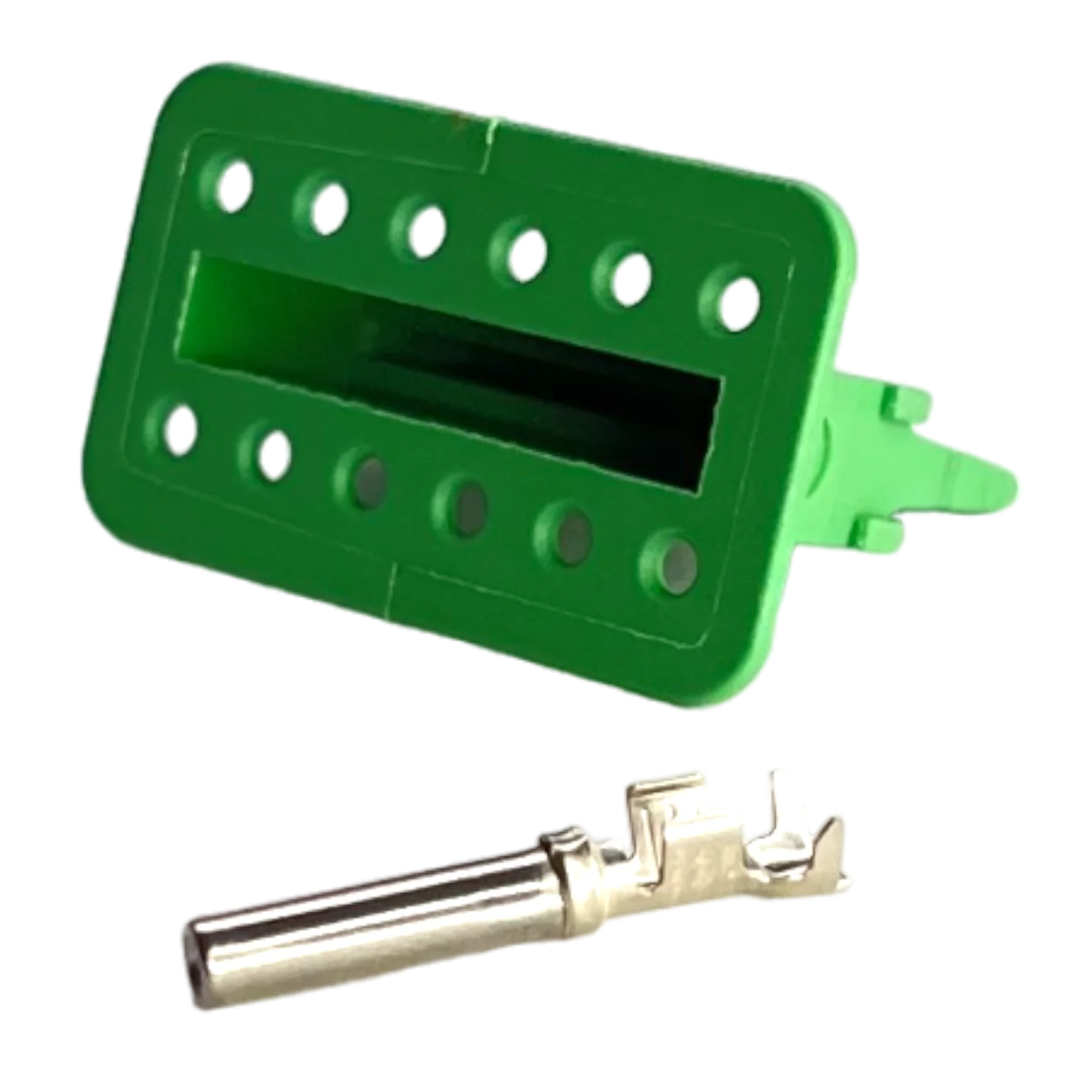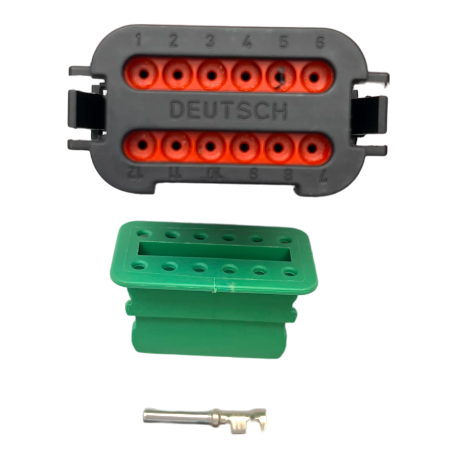 En el proceso de reparaci贸n de arneses el茅ctricos, la integridad del kit es fundamental. La carcasa del conector Ref. DT06-12S-E005 incluye los sellos de silicona naranja internos y el sello trasero multilabio para la entrada de los cables. Sin embargo, es importante aclarar que los terminales met谩licos (pines) y la cu帽a de bloqueo (wedgelock) se suministran generalmente de forma complementaria para permitir al t茅cnico elegir el calibre del cable adecuado (AWG 14, 16 o 18). Para un funcionamiento 贸ptimo, se deben utilizar pines niquelados de alta calidad que resistan el desgaste por fricci贸n y mantengan una conductividad superior bajo las cargas el茅ctricas del motor Caterpillar.