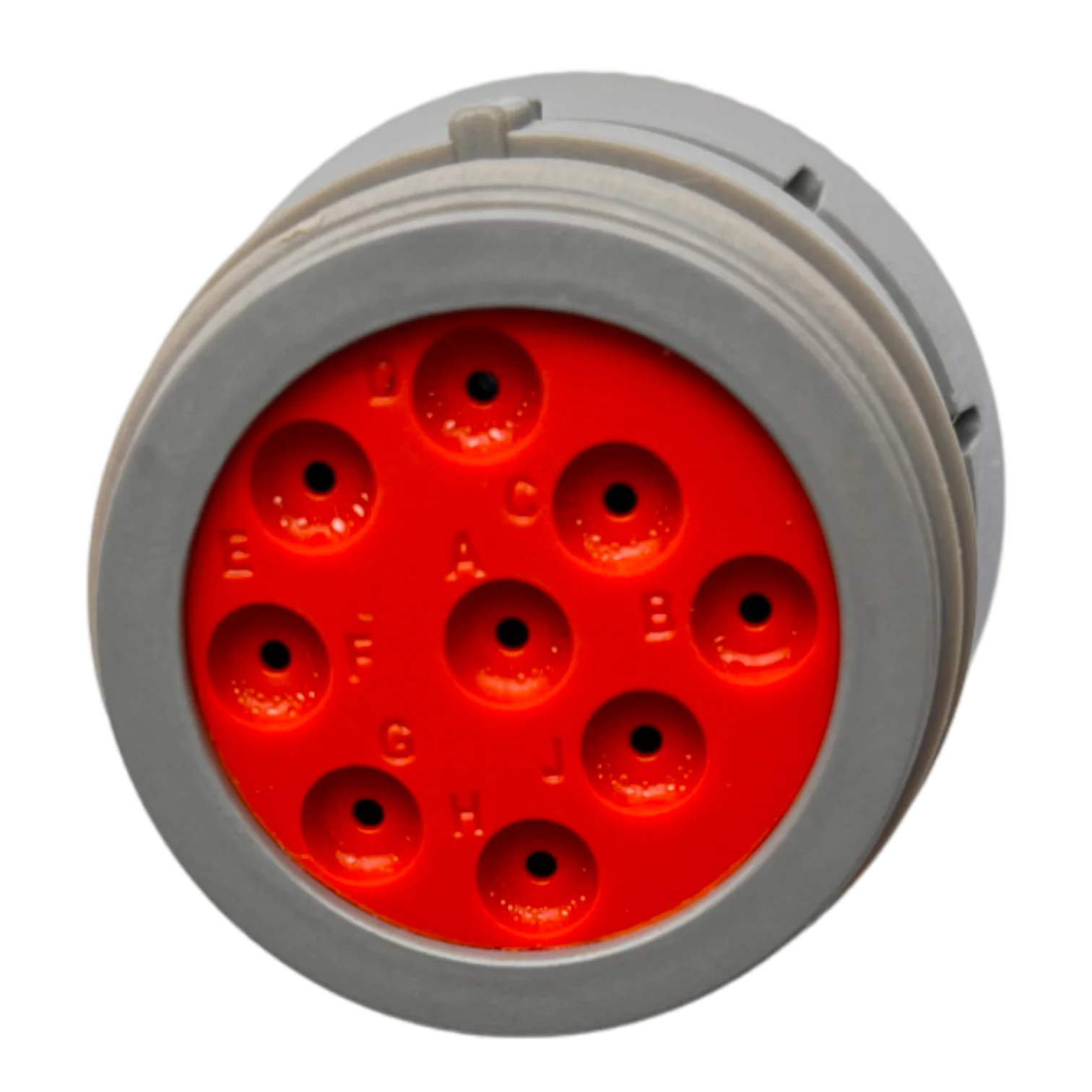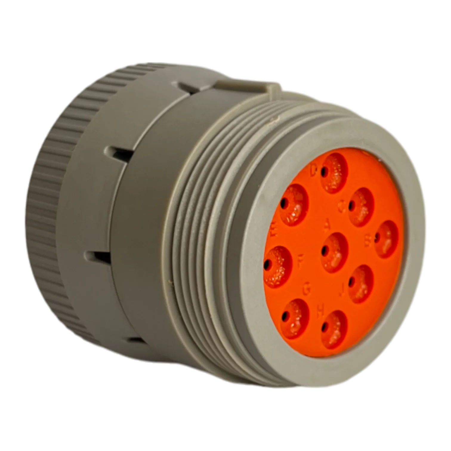 Identificar el conector original HD16-9-96S requiere observar detalles específicos que lo diferencian de imitaciones genéricas. Físicamente, es un receptáculo circular de color gris o negro con un anillo de acople roscado. La disposición de los 9 pines sigue un patrón circular con una muesca de alineación que evita inserciones incorrectas. Una característica distintiva de los conectores Deutsch es la claridad de los números o letras (A-J) grabados en la cara frontal del conector, los cuales identifican cada cavidad. Además, el material debe sentirse rígido y poseer sellos de silicona internos que garantizan que el puerto sea impermeable al agua y al polvo.
