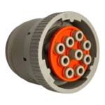 Este componente es un dispositivo de interconexión eléctrica de alta precisión, perteneciente a la prestigiosa serie HD10 de Deutsch, diseñado específicamente para soportar las exigencias del entorno de la maquinaria pesada y motores Caterpillar. Se trata de un conector circular de 9 cavidades con terminales tipo macho (pins), cuya carcasa de termoplástico reforzado garantiza una protección superior contra vibraciones, aceites y temperaturas extremas. Es el estándar físico que permite la comunicación entre el cerebro electrónico del motor (ECM) y las herramientas de escaneo, siendo una pieza crítica en el arsenal de cualquier técnico electrónico o mecánico diésel que busque integridad en la transmisión de datos.
