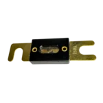El fusible Ref. ANL-150A sirve como el principal dispositivo de seguridad en circuitos de alta corriente para proteger los conductores y los equipos contra daños por sobrecarga o cortocircuito. Su función es interrumpir el circuito eléctrico de forma permanente si la corriente supera los 150 amperios durante un tiempo determinado, evitando que los cables se incendien o que los componentes internos de los amplificadores o inversores sufran daños irreparables. En Colombia, es una pieza crítica en instalaciones de 12V/24V donde la cantidad de amperaje es muy elevada y un error en el cableado podría derivar en un siniestro grave de forma casi instantánea si no se cuenta con esta protección.
